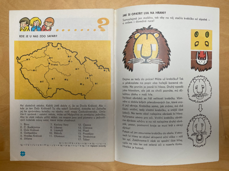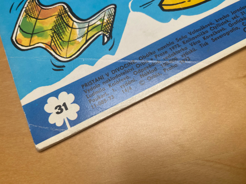 Krásný stav, obálka pevná, až na dvě vrásky od přehybů na zadní stránce a jednen přehyb a mírnou vrásečku na titulce u horní sponky. Hřbet pevný, bez poškození. Vnitřek taktéž pevný, čistý, sponky s mírnou korozí. Křížovky v tomto čísle nejsou, takže časopis je neluštěný, lev nevystřižený.