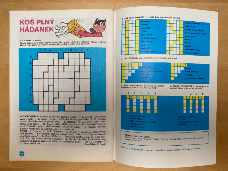 Krásný stav, obálka čistá, bez poškození, hřbet pevný, jen vespod asi 1 mm rozklížený, vnitřek čistý, sponky mírně orezlé. Jen oba rohy na zadní stránce obálky nesou známky po přehnutí. Křížovky neluštěny!