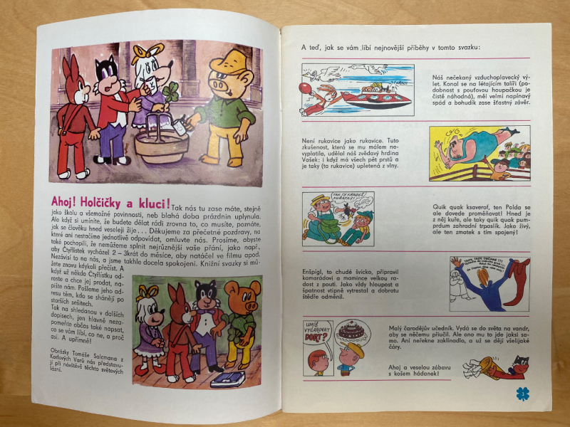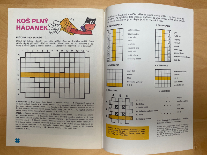 Krásný stav, obálka pevná, čistá, na zadní straně pár drobných vrásek, miniaturní ťupka u dřevorubcova klobouku. Hřbet drží po celé své délce. Vnitřek čistý, sponky orezlé. Křížovky neluštěny!