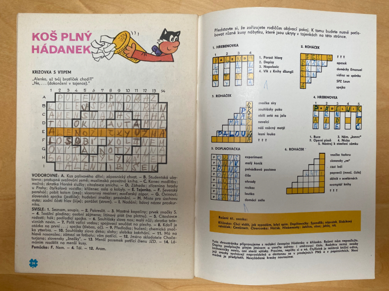 Poměrně obtížně sehnatelné číslo. Krásný stav, obálka pevná, čistá, vnitřek taktéž. Sponky bez koroze. Křížovky luštěny tužkou a perem..
