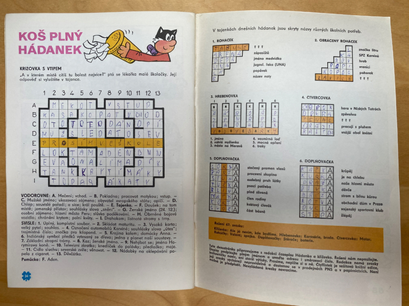 Krásný stav, obálka pevná, čistá, bez natržení, vnitřek taktéž čistý, sponky bez koroze. Křížovky luštěny jemně propiskou.