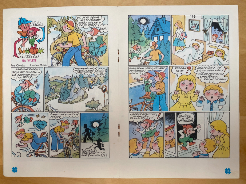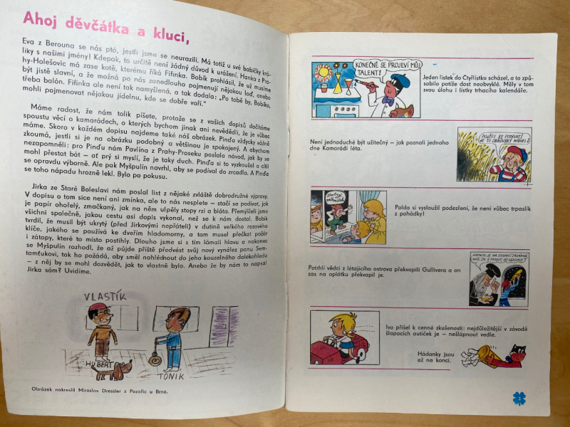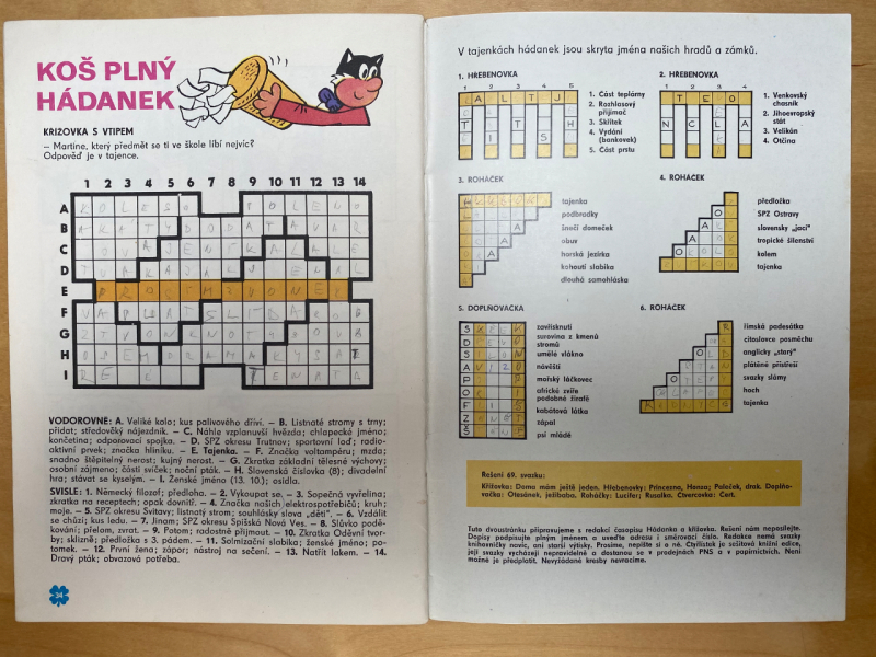 Pěkný stav, obálka pevná a čistá, jen místy pár vrásek a drobné ošoupání. Hřbet nahoře i vespod nepatrně rozklížený (1-2 mm). Uvnitř sem tam malý flíček. Sponky trochu orezlé. Křížovky luštěny jemně tužkou, pár písmenek propiskou.