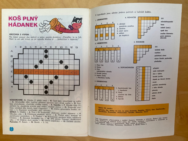 Nádherně zachovalý stav, Čtyřlístek je pevný, čistý, hřbet bez poškození, uvnitř na všech stránkách malinký flíček uprostřed vespod. Ve velké křížovce vepsána tajenka, malé neluštěny.